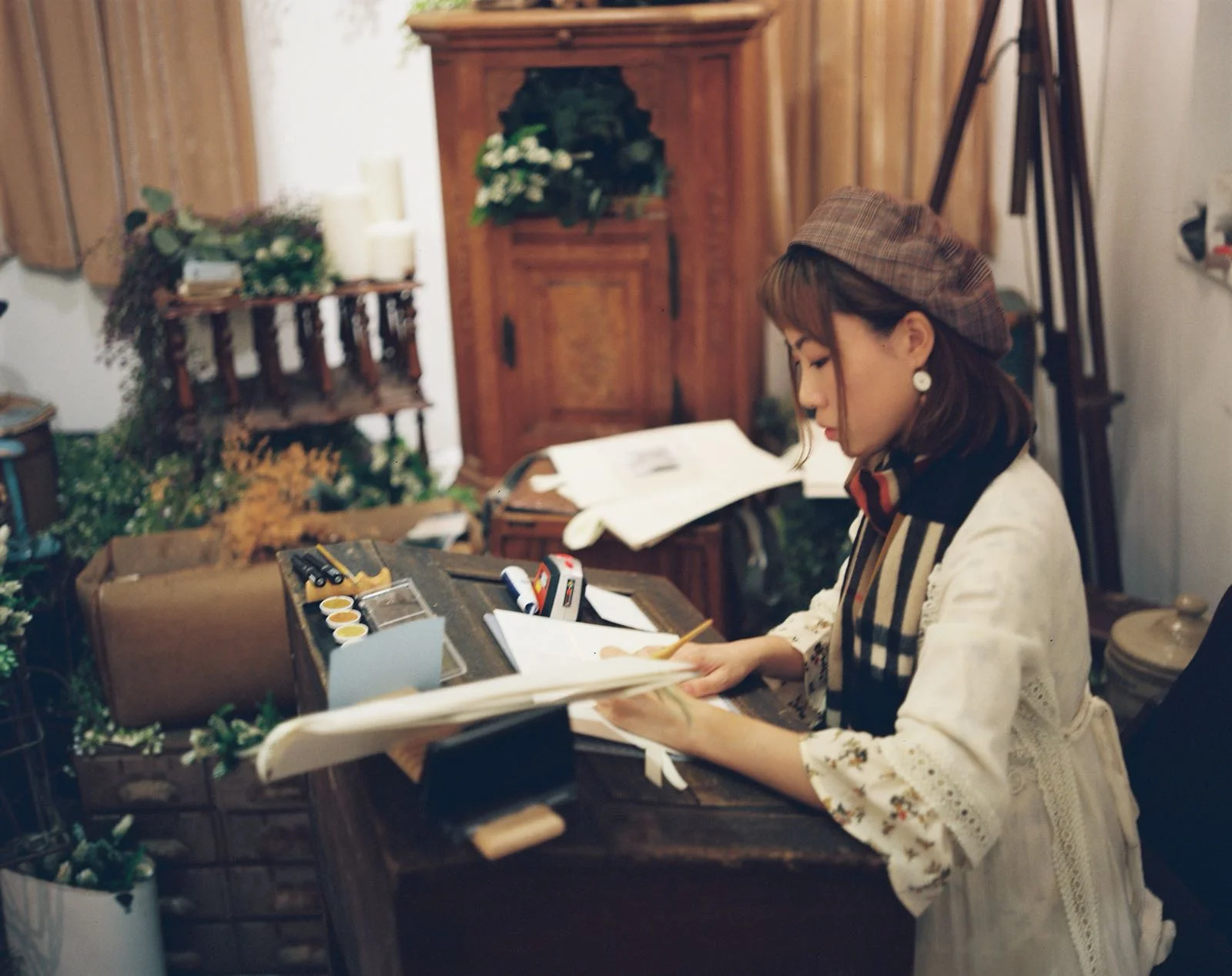 以古董木頭機 及 3x4” Integral 即影即有拍攝,再配上手繪花卉西洋書法玻璃相架,成為一份獨一無二又充滿古董質感的禮物。