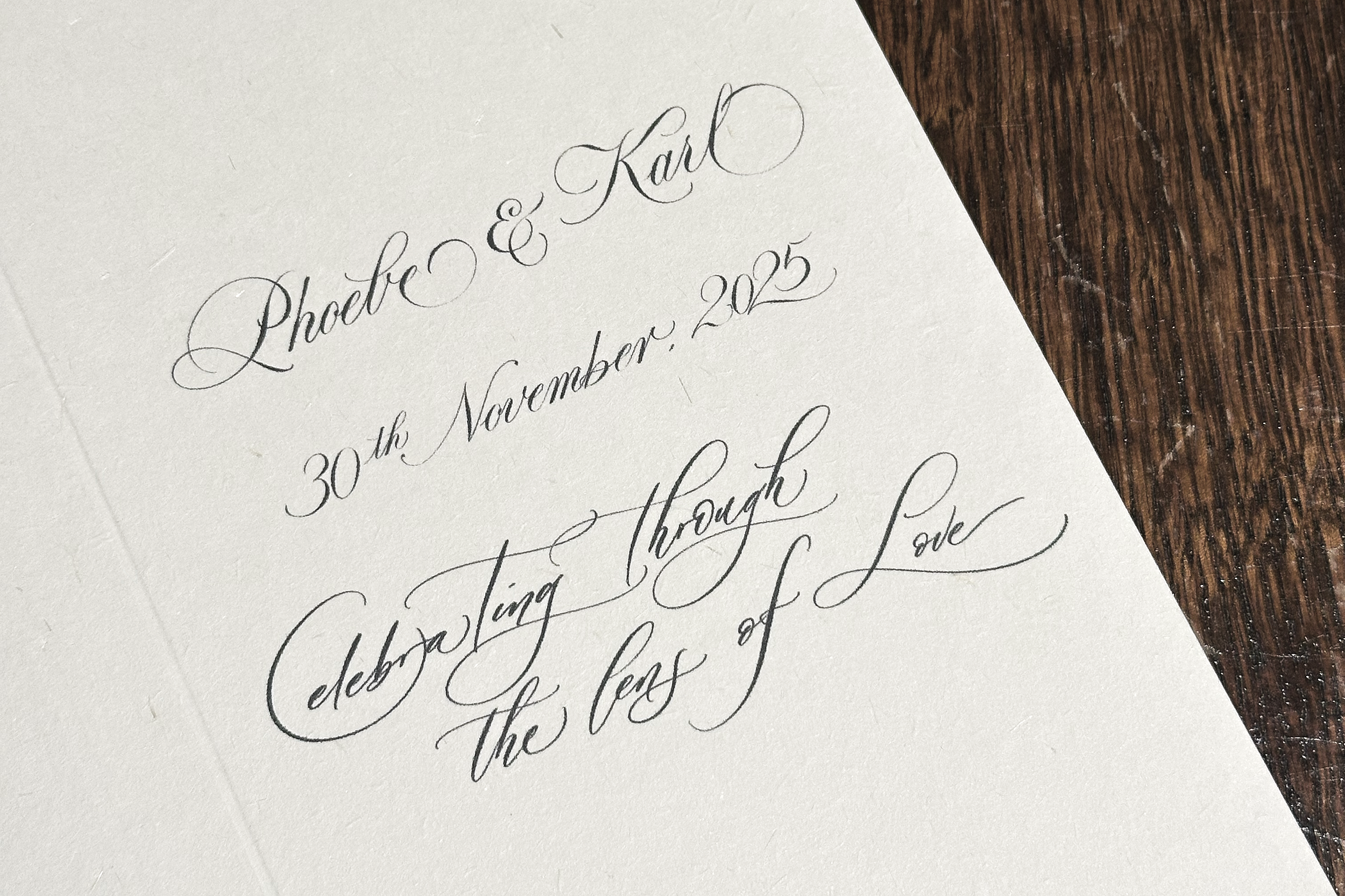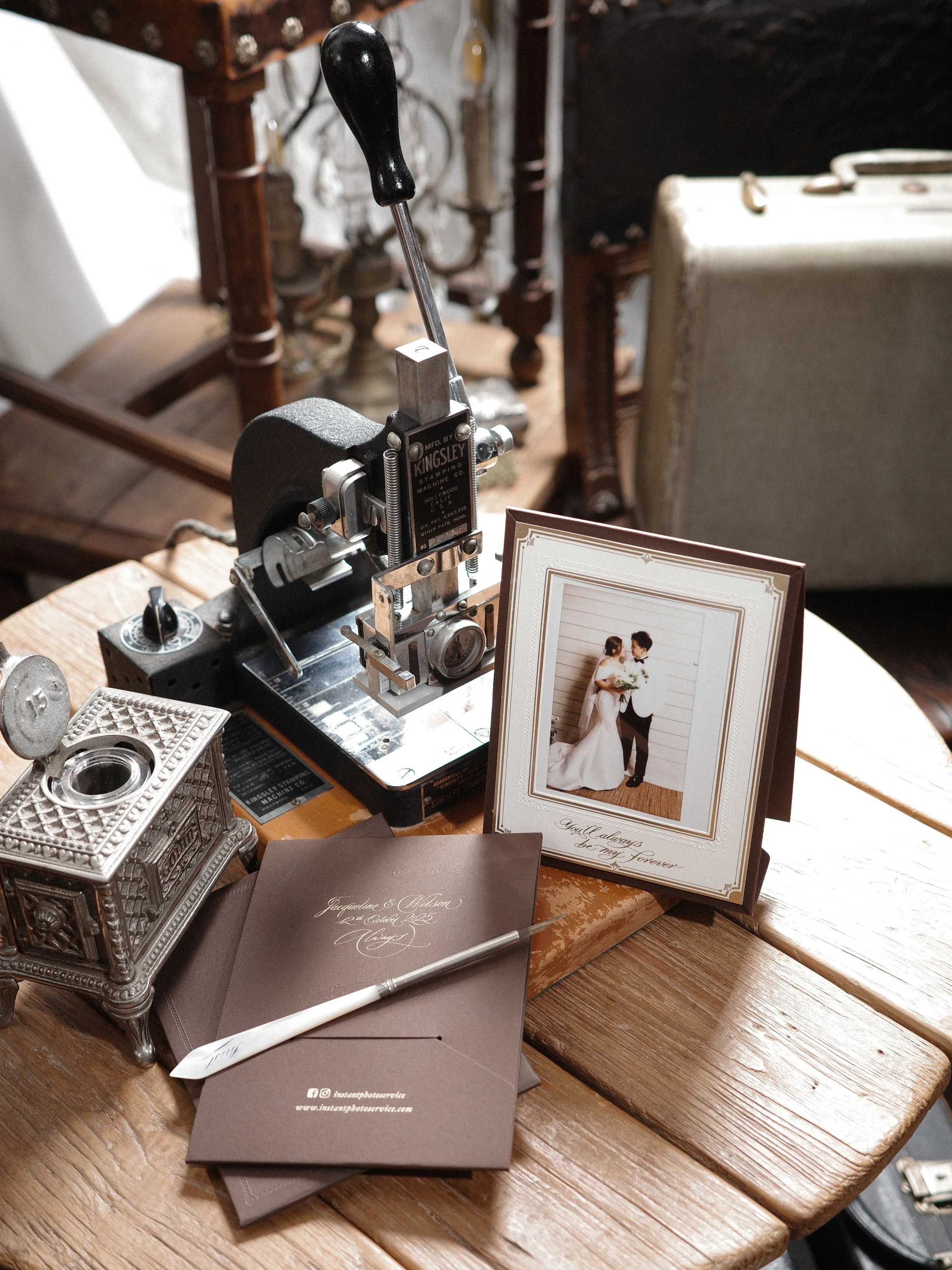 每張都附有相套包裝及以西洋書法設計並印上你們的名字、日期和送給賓客的心意字句。